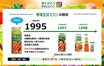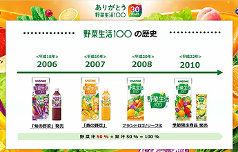 「野菜生活100」は、1995年に発売され、今年で30周年を迎えました。