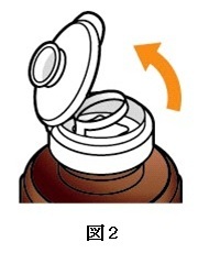 ② 出っ張り部分を上にあげ、中栓のフタを開きます(図2)。