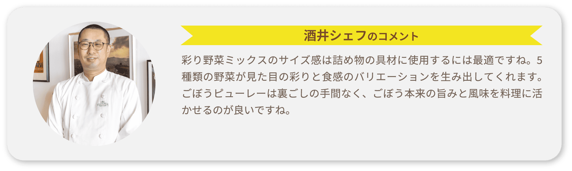 スフォルマートは、イタリア語で「蒸し焼き」「フラン」といった、甘くないプリンのような日本の茶碗蒸しに似た料理です。ごぼうピューレーの水分をさらにしっかり抜くことでごぼうの旨味をさらに出し、ローズマリーなどのハーブと合わせることでイタリアらしさを感じられる一皿に仕上げました。
